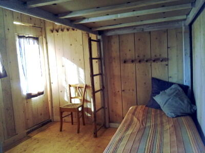 Cette cabane dans la forêt a été conçue pour nos amis clients amoureux de la nature. Elle a 3 couchages, 1 lit double et 1 lit simple. Sans eau courante ni électricité elle offre une alternative confortable au camping. Des toilettes sèches sont attenantes à la bâtisse.